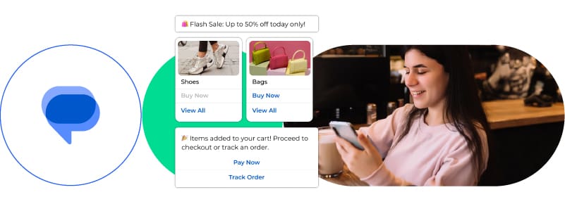 Rich Communication Services (RCS) combines the simplicity of native messaging with rich, app-like features that includes branded cards, high-resolution media, interactive buttons, suggested replies, verified business profiles, and deep analytics.