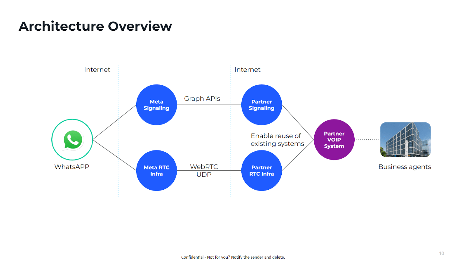 It integrates standard VoIP primitives such as call setup, media negotiation, and codecs with WhatsApp’s user authentication, opt-in mechanics, and verified business profiles.